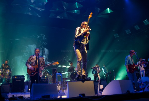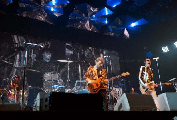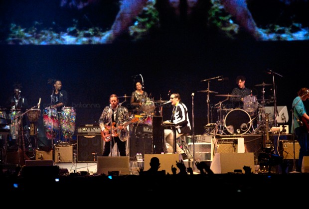 Por casi una década, Arcade Fire se ha movido entre sonidos indie un tanto eclécticos, los cuales han ido capturando un gran número de seguidores; convirtiéndola en una de las bandas más importantes del momento. Sus presentaciones son enormes y con un despliegue técnico inmenso. Ya es historia los tiempos aquellos en que se presentaban en clubes o locales pequeños, lo de ellos ahora es contagioso y masivo. Los miles de fans que acudieron al show en Londres portaban maquillaje, máscaras o vestimentas adornadas con lentejuelas generando un sentimiento de comunidad y fiesta gigante.