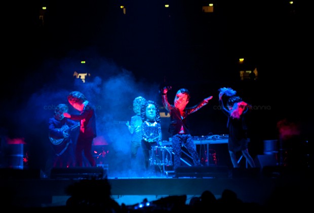 Un carnaval es lo que nos trajo la banda canadiense Arcade Fire a Londres. Dos escenarios, dos pantallas laterales, un batallón de extras entre hombres y mujeres enmascarados, esqueletos bailarines y un hombre de espejos danzante fueron el soporte de un espectacular show musical en Earl’s Court, el cual fue convertido en una discoteca gigante con reflectores, guirnaldas y bolas disco brillantes. Además, como si fuera poco, abriendo el show la segunda noche estuvo la neozelandesa Lorde y preparando la noche disco, los hermanos Dewaele de Soulwax, 2 Many DJ’s.