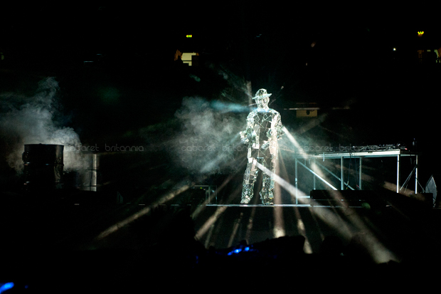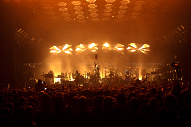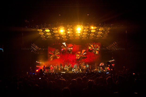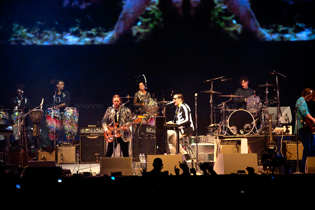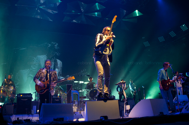 Por casi una década, Arcade Fire se ha movido entre sonidos indie un tanto eclécticos, los cuales han ido capturando un gran número de seguidores; convirtiéndola en una de las bandas más importantes del momento. Sus presentaciones son enormes y con un despliegue técnico inmenso. Ya es historia los tiempos aquellos en que se presentaban en clubes o locales pequeños, lo de ellos ahora es contagioso y masivo. Los miles de fans que acudieron al show en Londres portaban maquillaje, máscaras o vestimentas adornadas con lentejuelas generando un sentimiento de comunidad y fiesta gigante.