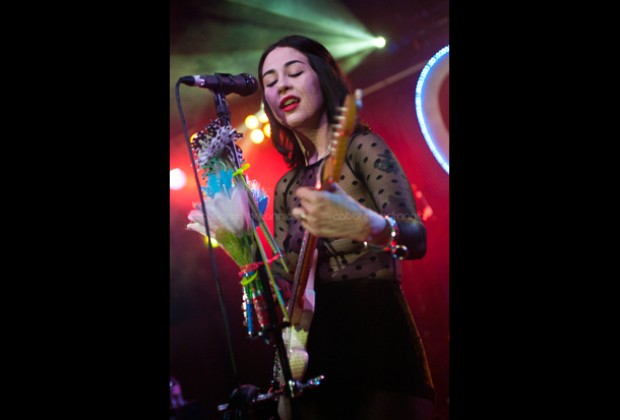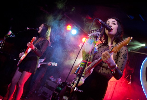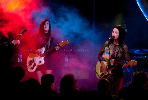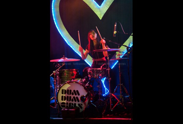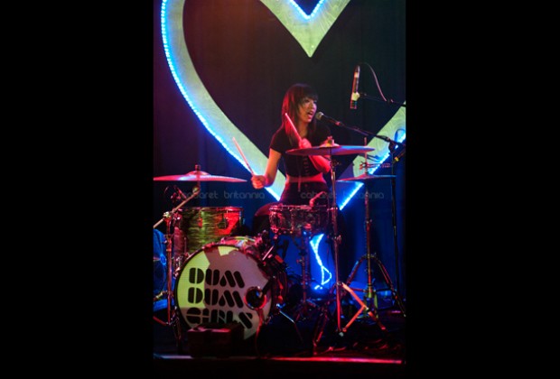 Una lluviosa noche londinense recibió al cuarteto estadounidense Dum Dum Girls que comenzó su gira por Europa con una presentación en el Scala de King’s Cross. Llegaban otra vez a la capital inglesa pero en esta oportunidad, con su nueva producción titulada Too True. Con una puesta en escena bien cuidada, las chicas subieron al escenario entre flores, un enorme corazón iluminado en azul como fondo e imponentemente vestidas de negro, para abrir el show con la cadenciosa Mine Tonight seguida de I Got Nothing que aparecen en su EP End of Daze. El parco inicio tomó entusiasmo inmediatamente con Bedroom Eyes que fue el siguiente tema y que aunque no puso al público a bailar, lo incitó a corear tímidamente el estribillo. El show incluyó temas de sus dos producciones anteriores y de la nueva, los cuales corrieron continuadamente por un poco más de una hora, durante la cual, la única interacción con el público fue para saludar y agradecer.