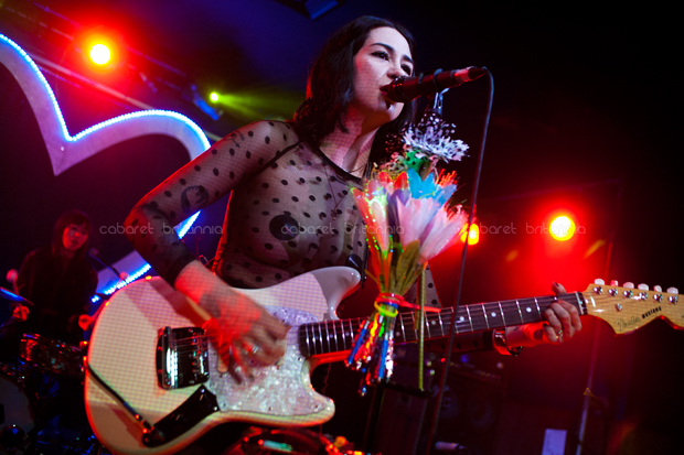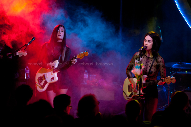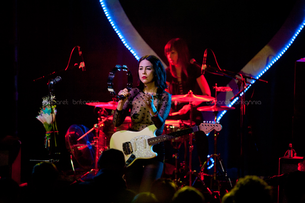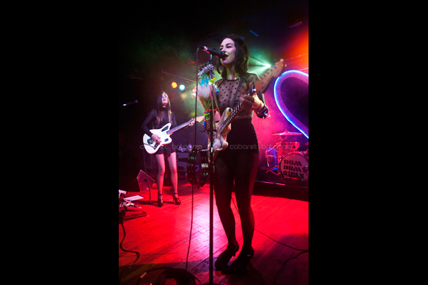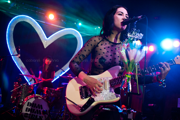 Una lluviosa noche londinense recibió al cuarteto estadounidense Dum Dum Girls que comenzó su gira por Europa con una presentación en el Scala de King’s Cross. Llegaban otra vez a la capital inglesa pero en esta oportunidad, con su nueva producción titulada Too True. Con una puesta en escena bien cuidada, las chicas subieron al escenario entre flores, un enorme corazón iluminado en azul como fondo e imponentemente vestidas de negro, para abrir el show con la cadenciosa Mine Tonight seguida de I Got Nothing que aparecen en su EP End of Daze. El parco inicio tomó entusiasmo inmediatamente con Bedroom Eyes que fue el siguiente tema y que aunque no puso al público a bailar, lo incitó a corear tímidamente el estribillo. El show incluyó temas de sus dos producciones anteriores y de la nueva, los cuales corrieron continuadamente por un poco más de una hora, durante la cual, la única interacción con el público fue para saludar y agradecer.