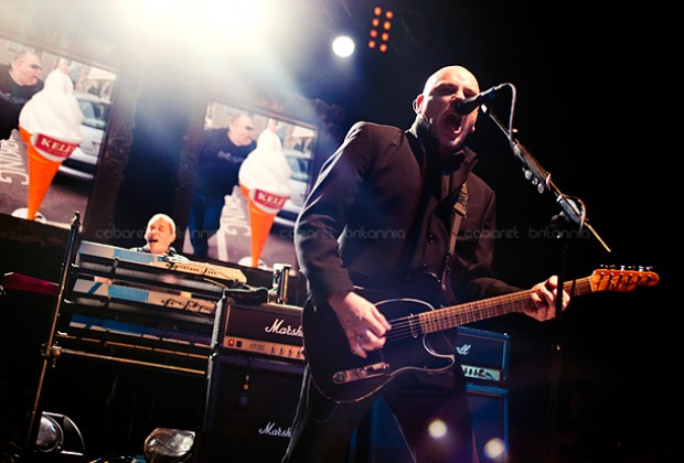 Precisamente, es ese tupido velo sobre su papel en la historia del punk lo que ha permitido a The Stranglers cantar, hacer y decir lo que les ha venido en gana durante los cuarenta años que celebran. El recientemente remodelado Hammersmith Apollo estaba vestido de gala para la ocasión mientras los estrangulados seguidores, de todas las edades imaginables y locos perdidos por la visita de sus ídolos, humectaban con profusión las gargantas que a partir de las nueve en punto vitorearían al primer toro de la noche: una versión imparable de London Lady con la brutal potencia que la leyenda concede a las batallas campales y presentaciones primigenias del grupo [Little lady with Dingwalls bullshit / you’re so stupid, una línea presuntamente dedicada a un amor casual de Cornwell en esos días, la hoy notable periodista Catherine Coon] hizo estallar al variopinto aforo. En ausencia del aporreo original de Jet Black por sus conocidos problemas de salud, el batería itinerante de la banda Jim McCauley y el bajo de J J Burnel marcaron el paso de una pesadísima artillería musical que abrió la noche en embestida, haciendo que cuerpos y cerebros se sacudiesen hasta el punto que honorables damas ya entradas en años y carnes –fuimos testigos directos de esto– empezaran a abalanzarse contra las vallas de seguridad, queriendo trepar por sobre ellas como si tuviesen cuarenta años menos. Para aniquilar cualquier duda sobre la fuerza del avasallador impacto inicial de la banda, qué mejor que mantener saltando al personal con una gloriosa y demoledora No More Heroes y la más discreta pero no menos vibrante Coup de Grace / SOS.