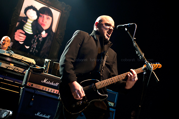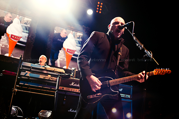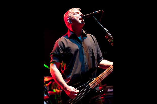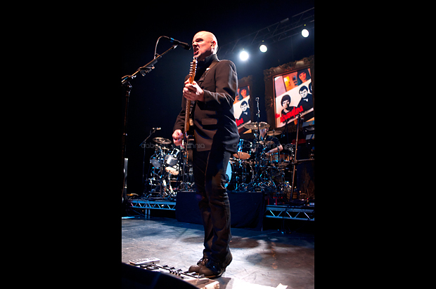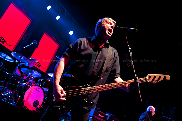 Precisamente, es ese tupido velo sobre su papel en la historia del punk lo que ha permitido a The Stranglers cantar, hacer y decir lo que les ha venido en gana durante los cuarenta años que celebran. El recientemente remodelado Hammersmith Apollo estaba vestido de gala para la ocasión mientras los estrangulados seguidores, de todas las edades imaginables y locos perdidos por la visita de sus ídolos, humectaban con profusión las gargantas que a partir de las nueve en punto vitorearían al primer toro de la noche: una versión imparable de London Lady con la brutal potencia que la leyenda concede a las batallas campales y presentaciones primigenias del grupo [Little lady with Dingwalls bullshit / you’re so stupid, una línea presuntamente dedicada a un amor casual de Cornwell en esos días, la hoy notable periodista Catherine Coon] hizo estallar al variopinto aforo. En ausencia del aporreo original de Jet Black por sus conocidos problemas de salud, el batería itinerante de la banda Jim McCauley y el bajo de J J Burnel marcaron el paso de una pesadísima artillería musical que abrió la noche en embestida, haciendo que cuerpos y cerebros se sacudiesen hasta el punto que honorables damas ya entradas en años y carnes –fuimos testigos directos de esto– empezaran a abalanzarse contra las vallas de seguridad, queriendo trepar por sobre ellas como si tuviesen cuarenta años menos. Para aniquilar cualquier duda sobre la fuerza del avasallador impacto inicial de la banda, qué mejor que mantener saltando al personal con una gloriosa y demoledora No More Heroes y la más discreta pero no menos vibrante Coup de Grace / SOS.